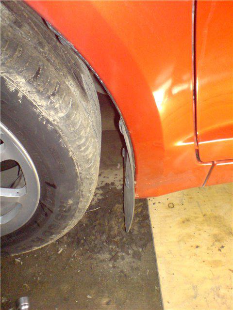 Приобрел для этого на авторынке пару корытец рублей по 40 за каждое. Сначала отрезал боковые бортики и получилась плоская очень эластичная резинка. ![]() Далее прикладывая резинку к крылу очертил края по крылу, что бы видно было как прикладывать в дальнейшем. Отсоединил клипсы подкрылки: три со стороны колеса и одна под порогом. Заправил резинку между брызговиком и крылом, откалибровал по краю, и шилом проколол дырки в резине там где положено. крепить я собирался штатными пистонами. После проколов нижний пистон вернулся на свое место, и прижал подкрылок к крылу. Вырезал три дырки ножом, чтобы пистоны проходили свободно. И удалил излишек резины. Готовый результат: ![]() ![]()